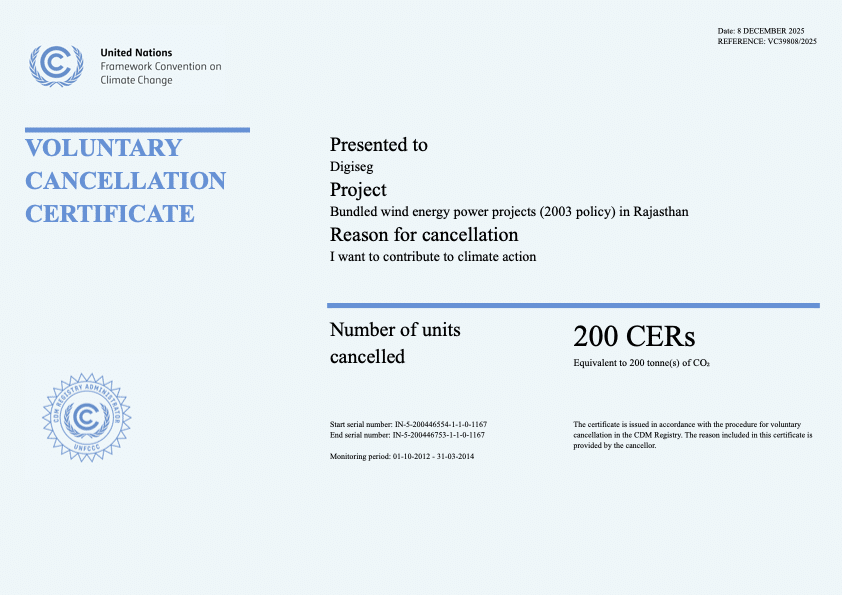 To mark the end of 2025, Digiseg has offset 800 metric tons of carbon through the United Nations Carbon Offset Platform — enough to cover Santa’s annual long-haul journey.